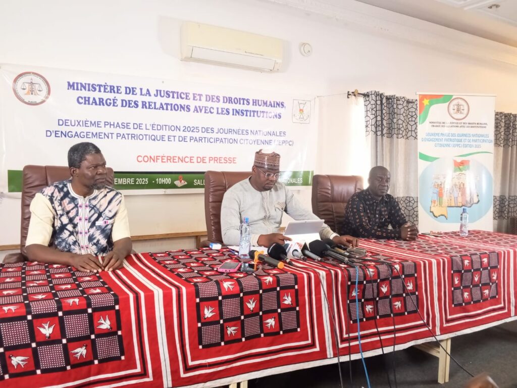 Le ministre de la Justice et des Droits humains, chargé des Relations avec les institutions, Garde des Sceaux, Me Edasso Rodrigue Balaya, a annoncé, ce mardi 23 septembre 2025 à Ouagadougou, lors d’une conférence de presse, le lancement des activités de la deuxième quinzaine de l’édition 2025 des Journées nationales d’engagement patriotique et de participation citoyenne (JNPPC). Cette phase se déroulera du 2 au 16 octobre 2025 autour du thème : « Pour l’ordre et la discipline, je m’engage !»