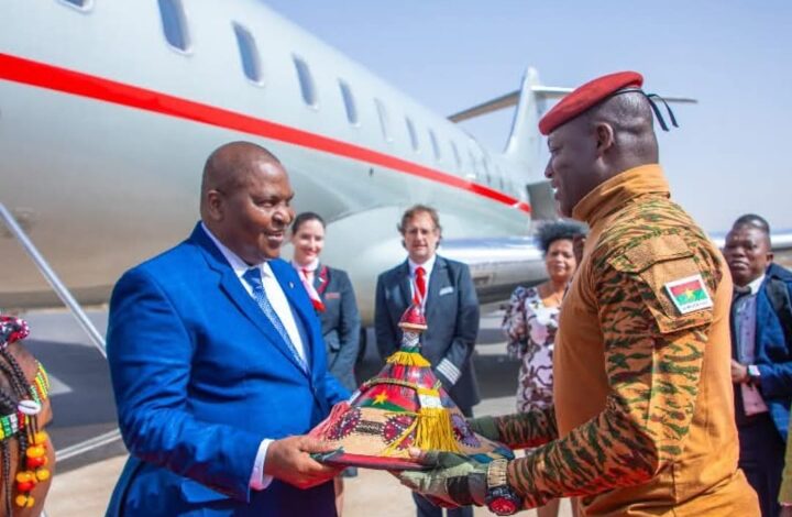 Le Président de la République centrafricaine séjourne à Ouagadougou dans le cadre d’une visite d’amitié et de travail pour le renforcement de l’axe Ouagadougou-Bangui. Accueilli à l’aéroport international de Ouagadougou, Faustin-Archange TOUADERA a eu un tête-à-tête au Palais de Koulouba avec le Président du Faso, Chef de l’État, le Capitaine Ibrahim TRAORE.