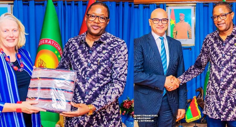 Le ministre des Affaires étrangères de la Coopération régionale et des Burkinabè l’Extérieur, Son Excellence Monsieur Karamoko Jean Marie TRAORE, a reçu ce lundi 18 août 2025, leurs Excellences Madame Esther LOEFFEN et Monsieur Sherif Abdel Kader Abdel Latif NADA, respectivement ambassadeur des Pays-Bas et de la République Arabe d’Egypte en fin de mission au Burkina Faso.