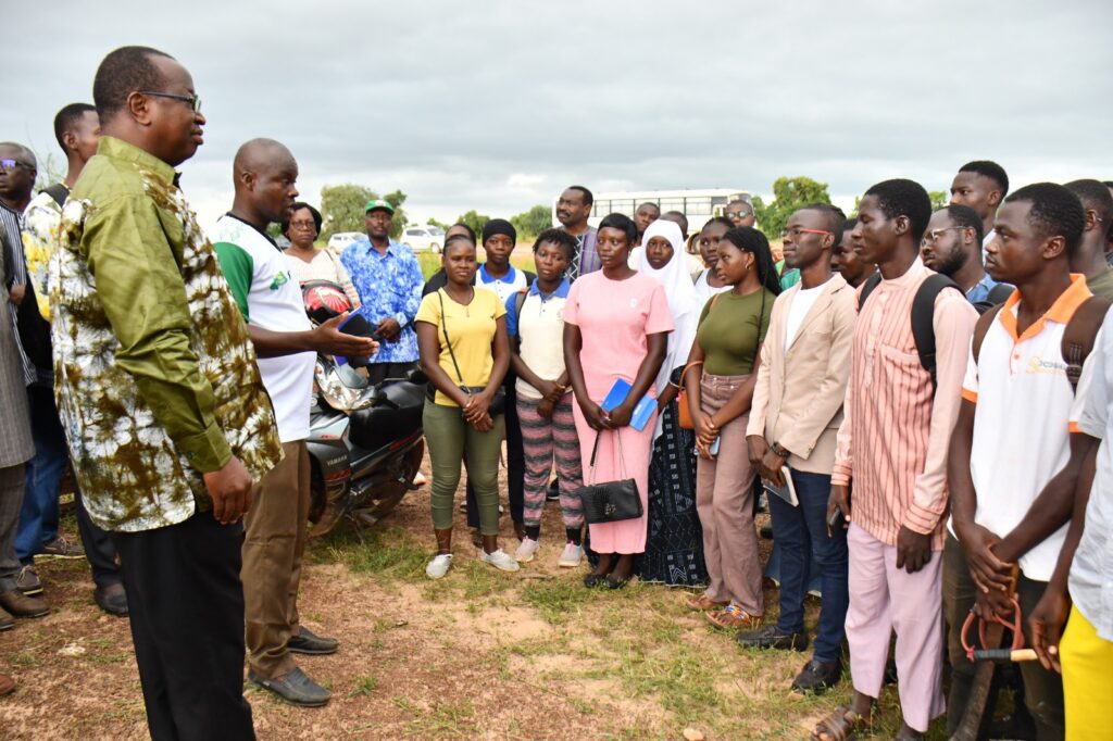 Le Ministre de l’Enseignement Supérieur, de la Recherche et de l’Innovation (MESRI), Pr Adjima Thiombiano, a effectué une visite à Gampèla ce samedi 20 septembre 2025. L’objectif était de s’imprégner de la mise en œuvre du projet de champ collectif des étudiants et de les encourager.