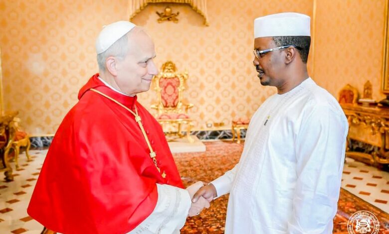 Ce jeudi 16 octobre 2025, Sa Sainteté le pape Léon XIV a reçu en audience, au Palais apostolique du Vatican, le président de la République du Tchad, S.E. le Maréchal Mahamat Idriss Déby Itno, qui a ensuite rencontré le cardinal Pietro Parolin, Secrétaire d’État, accompagné de S.E. Mgr Paul Richard Gallagher, secrétaire pour les Relations avec les États et les organisations internationales.