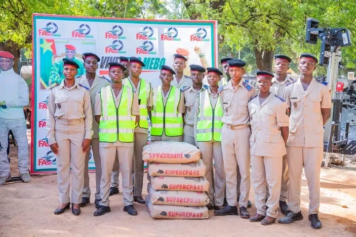 Les enfants de troupe du Prytanée militaire de Kadiogo (PMK) ont une fois de plus démontré leur sens du devoir et leur engagement citoyen. Ce samedi 18 octobre 2025, les jeunes pensionnaires de cette prestigieuse institution militaire, accompagnés de leurs enseignants, ont apporté leur contribution à l’initiative présidentielle “Faso Mêbo”, dédiée à l’embellissement et à la reconstruction du Burkina Faso. Un don de 10 tonnes de ciment.