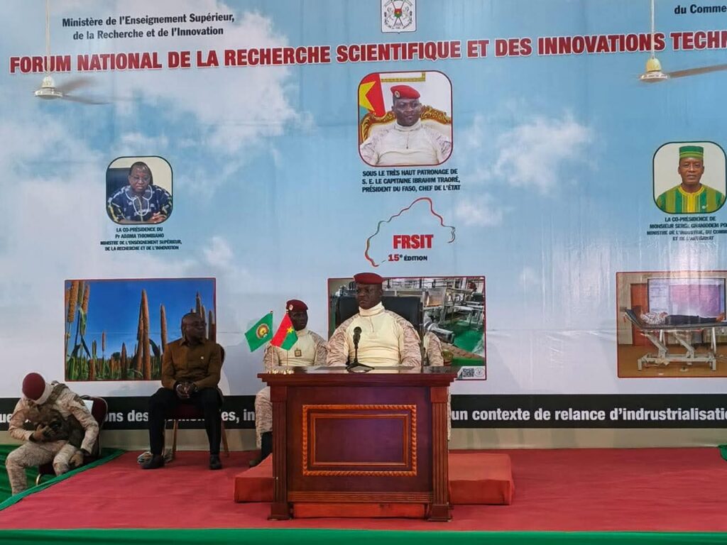 Le Président du Faso, Chef de l’État, le Capitaine Ibrahim Traoré, a présidé ce mercredi 22 Octobre 2025 la cérémonie d’ouverture de la quinzième édition du Forum National de la Recherche Scientifique et des Innovations Technologiques (FIRST) à Ouagadougou. Cette édition qui se tiendra du 22 au 26 Octobre est placée sous le thème : « Quelles contributions des technologies, des inventions et innovations dans un contexte de relance industrielle du Burkina Faso ». La République du Mali est le pays invité d’honneur de cette édition du FIRST.
