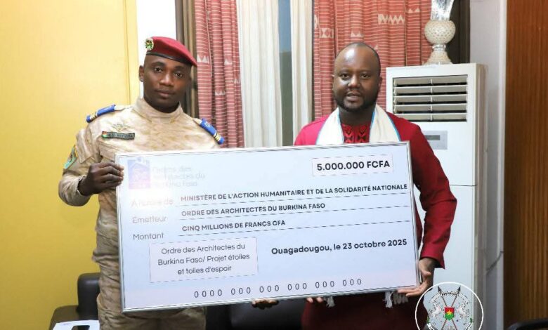 Dans un élan de solidarité concrète, l’Ordre des Architectes du Burkina Faso (OAB), conduit par son président, Monsieur Thierry Daniel COUBOURA, a remis un chèque de 5 000 000 FCFA au Ministère de l’Action humanitaire et de la Solidarité nationale (MAHSN) pour soutenir les populations vulnérables.