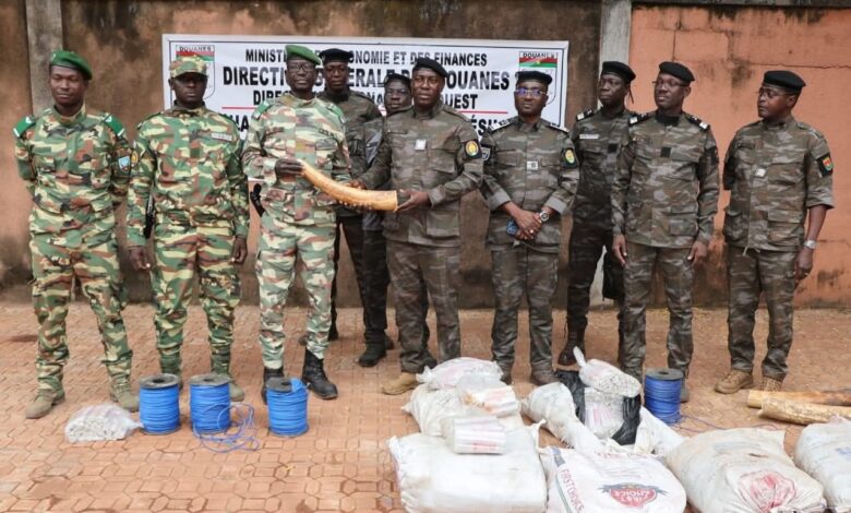 Lors de cette même cérémonie, la Douane a également remis à la 𝐝𝐢𝐫𝐞𝐜𝐭𝐢𝐨𝐧 𝐫é𝐠𝐢𝐨𝐧𝐚𝐥𝐞 𝐝𝐞𝐬 𝐄𝐚𝐮𝐱 𝐞𝐭 𝐅𝐨𝐫ê𝐭𝐬 𝐝𝐮 𝐆𝐮𝐢𝐫𝐢𝐤𝐨 un lot d’ivoires de 20 kg saisis dans le cadre de cette vaste opération. Par ce double geste, l’administration douanière réaffirme la dimension transversale de son action : 𝐩𝐫𝐨𝐭é𝐠𝐞𝐫 à 𝐥𝐚 𝐟𝐨𝐢𝐬 𝐥𝐚 𝐬é𝐜𝐮𝐫𝐢𝐭é 𝐝𝐮 𝐭𝐞𝐫𝐫𝐢𝐭𝐨𝐢𝐫𝐞 𝐞𝐭 𝐥𝐞 𝐩𝐚𝐭𝐫𝐢𝐦𝐨𝐢𝐧𝐞 𝐧𝐚𝐭𝐮𝐫𝐞𝐥 𝐝𝐮 𝐩𝐚𝐲𝐬. Qu’il s’agisse d’explosifs ou d’éléments issus du braconnage, chaque saisie traduit la même volonté ferme : 𝐚𝐬𝐬𝐚𝐢𝐧𝐢𝐫 𝐥𝐞𝐬 𝐜𝐢𝐫𝐜𝐮𝐢𝐭𝐬, 𝐩𝐫é𝐬𝐞𝐫𝐯𝐞𝐫 𝐥𝐚 𝐯𝐢𝐞 𝐞𝐭 𝐝é𝐟𝐞𝐧𝐝𝐫𝐞 𝐥𝐚 𝐬𝐨𝐮𝐯𝐞𝐫𝐚𝐢𝐧𝐞𝐭é 𝐧𝐚𝐭𝐢𝐨𝐧𝐚𝐥𝐞.