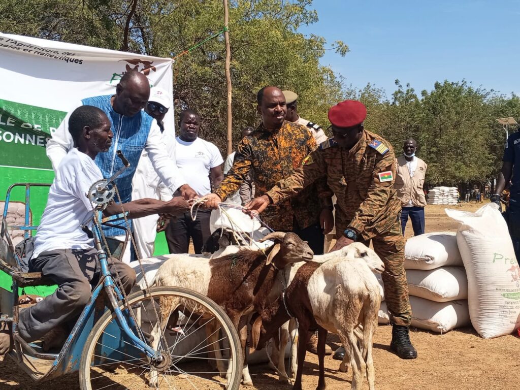 Le projet prend en compte 10 284 ménages vulnérables, notamment des personnes déplacées internes (PDI), des personnes en situation de handicap, des veuves ainsi que toutes celles et ceux confrontés à des difficultés accrues. Au total, près de 83 590 personnes bénéficieront de cet appui, dont 38 014 hommes et 45 576 femmes. Les kits, d’une valeur d’environ 5 milliards de francs CFA, sont composés de 49 912 animaux, dont 6 836 caprins, 26 396 ovins, 2 916 porcins et 13 764 volailles, ainsi que de 43 759 sacs de 50 kg d’aliments pour animaux, soit 2 188 tonnes, en plus de matériels d’élevage et de produits vétérinaires.