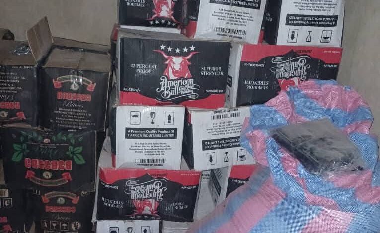 Le commerçant impliqué, identifié comme importateur de produits prohibés, a été appréhendé en possession de 355 cartons de liqueurs en sachet, une marchandise strictement interdite sur le territoire national.