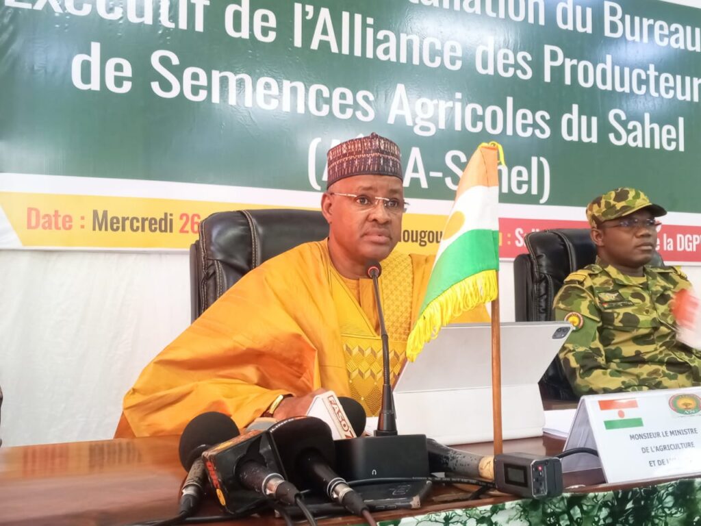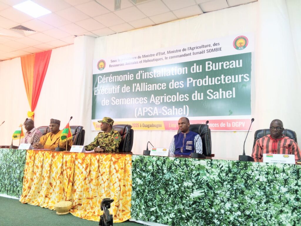 La cérémonie officielle d’installation du Bureau exécutif de l’Alliance des producteurs de semences agricoles du Sahel (APSA-Sahel) s’est tenue ce mercredi 26 novembre 2025 à Ouagadougou. Elle a été présidée par le ministre d’État, ministre de l’Agriculture, des Ressources animales et halieutiques, le Commandant Ismaël Sombié, accompagné de son homologue du Niger, le ministre de l’Agriculture et de l’Élevage, le Colonel Mahaman Elhadj Ousmane ainsi que de plusieurs autres autorités.
