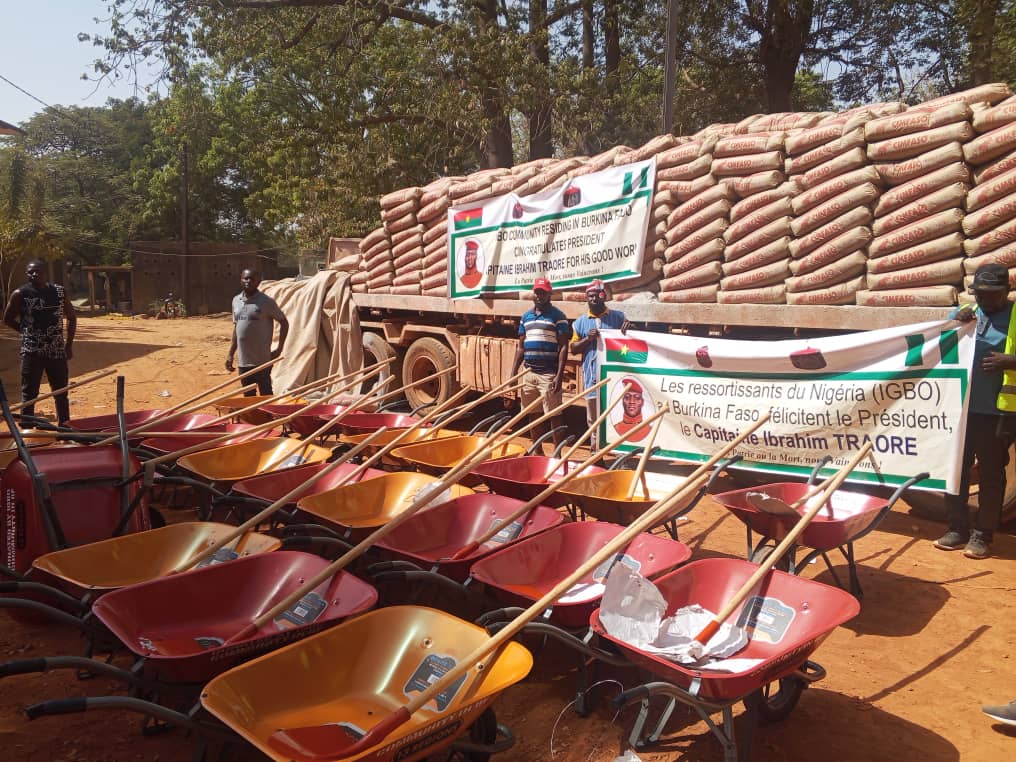Réunis au sein de la communauté Igbo , ces ressortissants nigérians vivant au Burkina Faso ont manifesté, ce lundi 8 décembre 2025, leur solidarité vis-à-vis de l’Initiative présidentielle Faso Mêbo. En effet, répondant à l’appel du Capitaine Ibrahim Traoré, ces derniers ont effectué le déplacement du Quartier général (QG) de Faso Mêbo à Ouagadougou, avec  360 tonnes de sable, 320 tonnes de granite, 25 brouettes et 24 pelles, le tout d’une valeur de plus de 12 millions de F CFA.