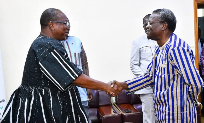 Suite à la décision du gouvernement d’ériger le Centre Universitaire de Gaoua en une université pleine avec nom de baptême «𝑼𝒏𝒊𝒗𝒆𝒓𝒔𝒊𝒕é 𝑺𝒊𝒃 𝑺𝒊é 𝑭𝒂𝒖𝒔𝒕𝒊𝒏 (𝑼2𝑺𝑭), » en hommage à ce pionnier de la recherche scientifique, une délégation de la famille SIB a rencontré le Ministre de l’Enseignement Supérieur, de la Recherche et de l’Innovation, le Pr Adjima THIOMBIANO, ce lundi 16 mars 2026.Conduite par Monsieur Naba Théodore PALE, cette délégation est venue traduire sa reconnaissance au gouvernement pour cette décision.
