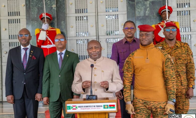 Le Président du Faso, Chef de l’État, Président de la Confédération des États du Sahel (AES), Son Excellence le Capitaine Ibrahim TRAORÉ, a eu des échanges, ce lundi en fin de matinée, avec le Président en exercice de l’Union Africaine (UA), le Président burundais, le Général Évariste NDAYISHIMIYE.